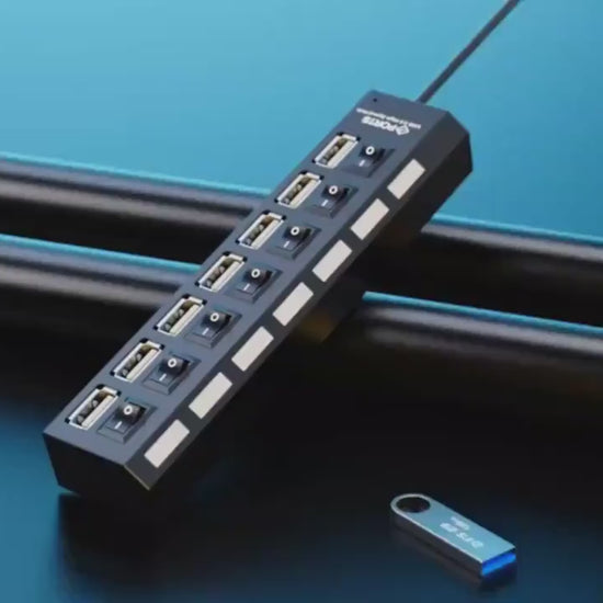 A variety of accessories such as mobile OTG adapters, printers, cameras, USB fans, and USB cables are available to meet your daily work requirements. This 7-port USB splitter supports USB 3.0 for ultra high-speed data transfer at 5Gbps, compatible with 2.0/1.0. It can quickly transmit high-definition movies. It also features a single LED power switch with blue low light.